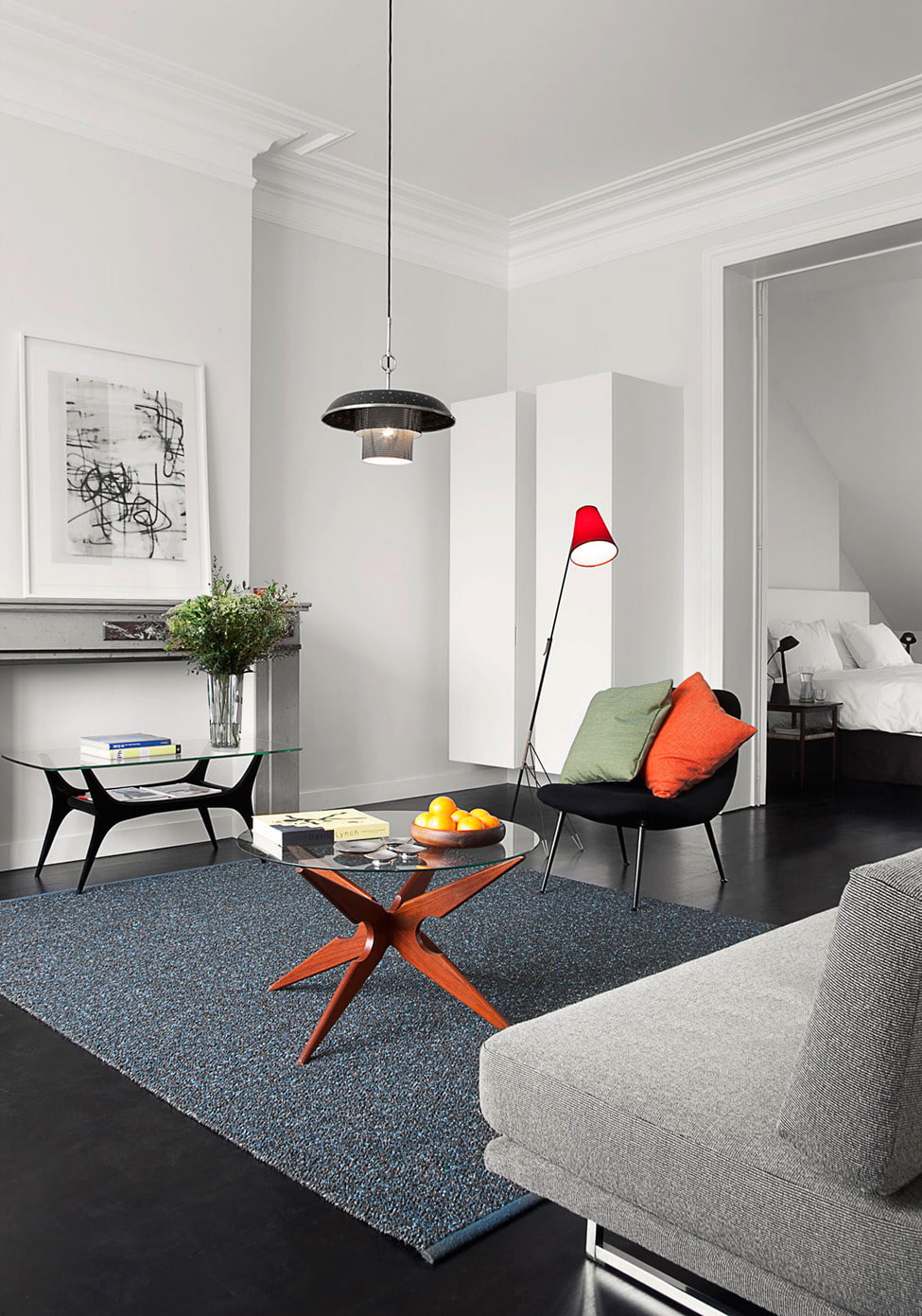 In general, bent pipes became a kind of flagship of that time (~ 20s of the XX century). That is the popular armchair of Marcel Breuer made of chrome-plated metal pipes with leather straps. A second example is open shelving, often used for zoning space.