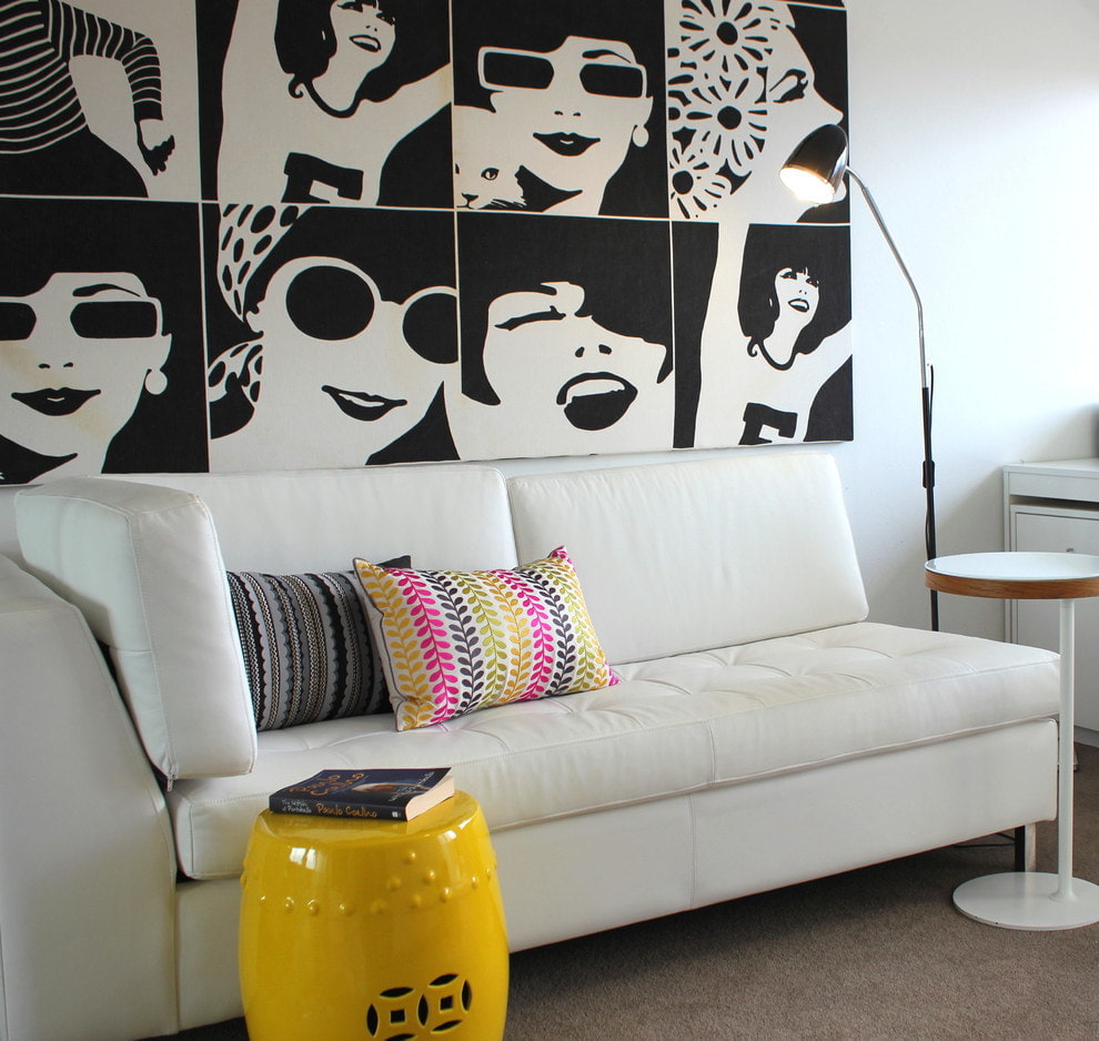 | Black and white sofa | Classic color combinations. Contrasting contrasting colors will work well in a modern interior. | |