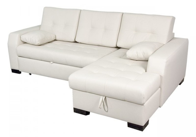 On the picture large white corner sofa with leather upholstery.