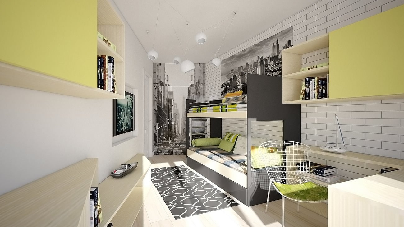 If the apartment has a children's room, it can be decorated in white, and a brick wall will make the interior stylish. Against its background, both bright children's furniture and children's crafts, placed on special shelves, will look good.
