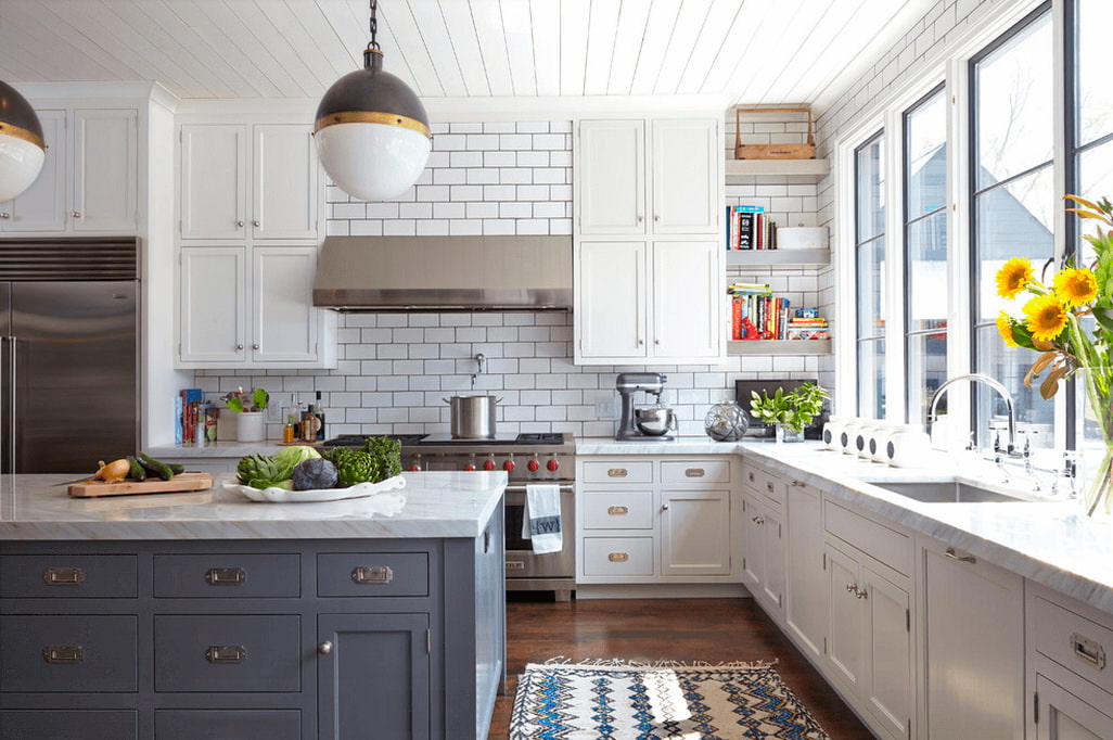 White brick in the design of the kitchen can work to separate functional areas if they cook and dine in the same room. Additionally, brick finishing of the island or the bar counter is possible - this will add completeness and solidity to the room.