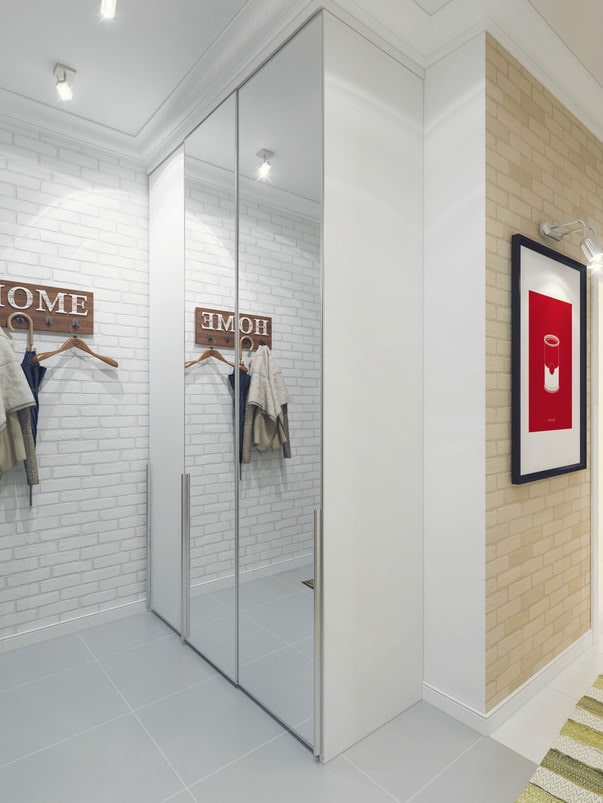 Usually this is one of the darkest rooms in the apartment, moreover, it is crowded with storage systems. The use of white brick in the interior of the apartment in the entrance area will make it much lighter and slightly more spacious visually.
