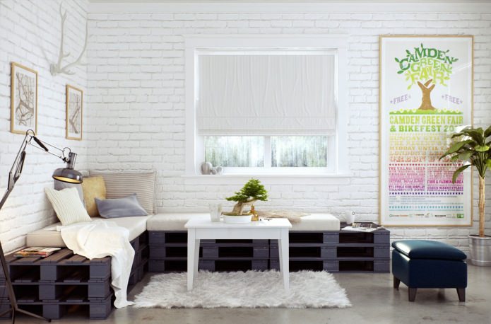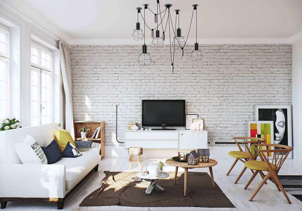 A white brick wall makes the room visually more spacious and gives airiness.