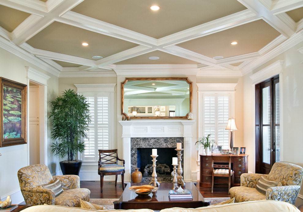 In the living room, you can use an unusual curly design that defines the recreation area. Cream shades match the living room in a classic or modern style. By adding wooden beams, the interior will immediately look different - closer to the rustic style.