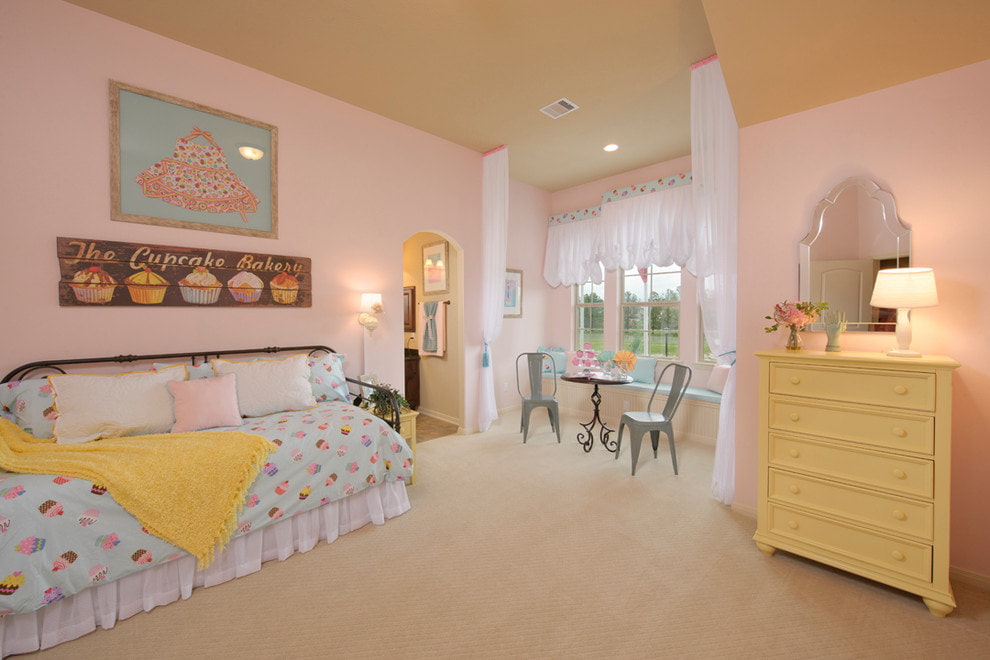 The beige color will become the base for the children's room. Bright paints can be used on walls, carpeting, or photo wallpaper on ceilings.