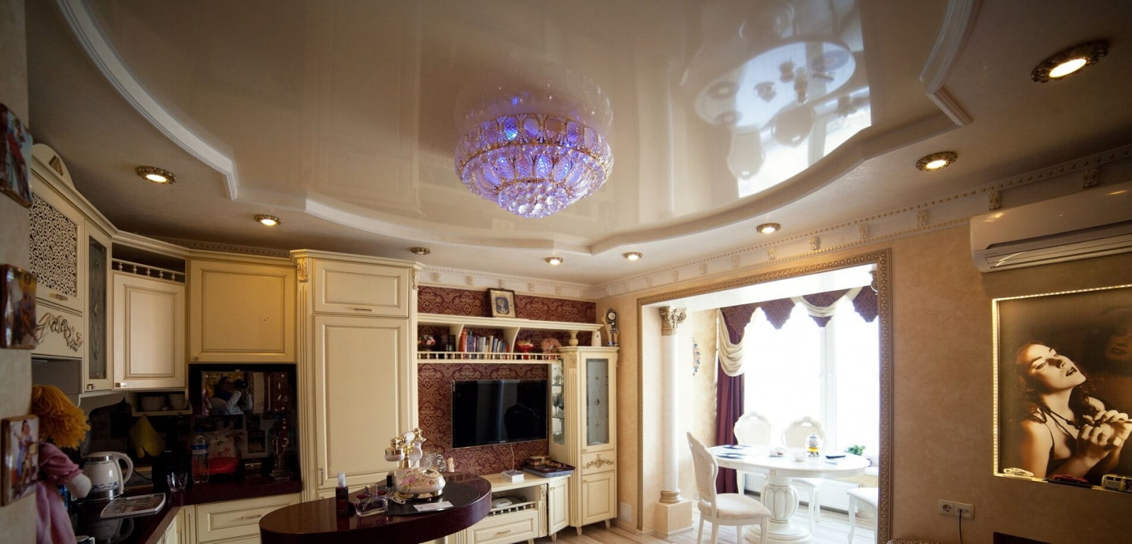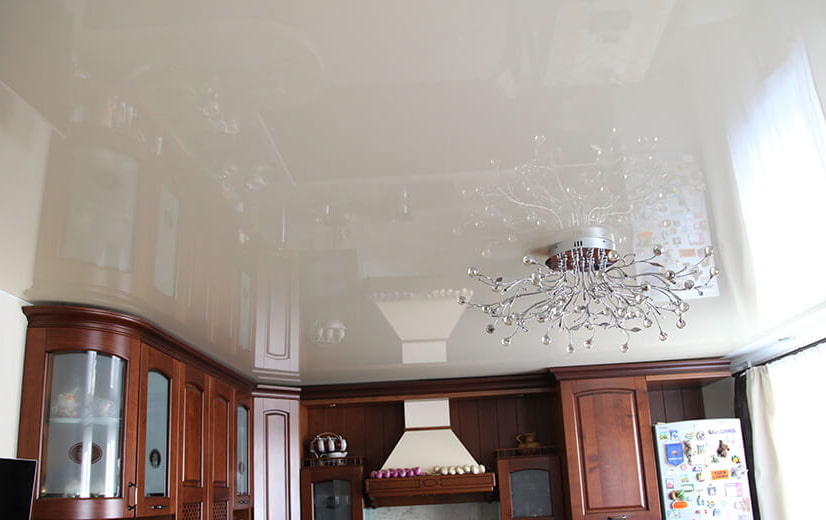 The ceiling with a glossy surface has reflective properties, which allows you to visually increase the area of \ u200b \ u200bthe room. A wide range of colors is presented, which allows you to create the desired interior. In complex lighting, the glare of light will play on the mirror surface.