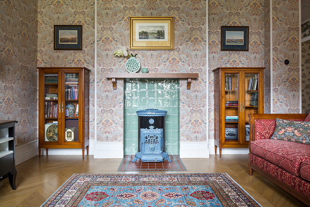 The choice of stove devices surprises with its variety. Decorating the interior in a classic style, it is worth choosing high-quality finishes and furniture, as well as expensive decor. If your choice fell on a stove, place it in the fireplace portal: a decent frame will make the stove look more noble.