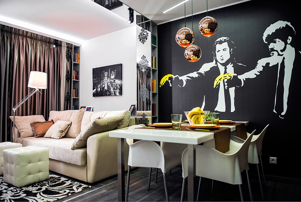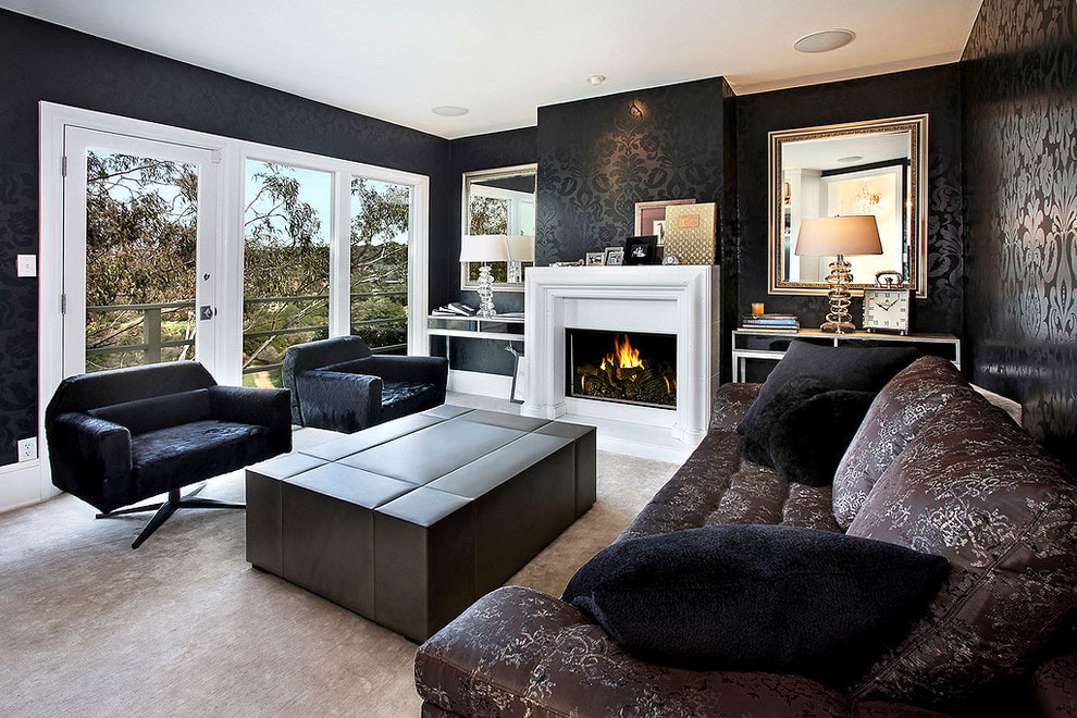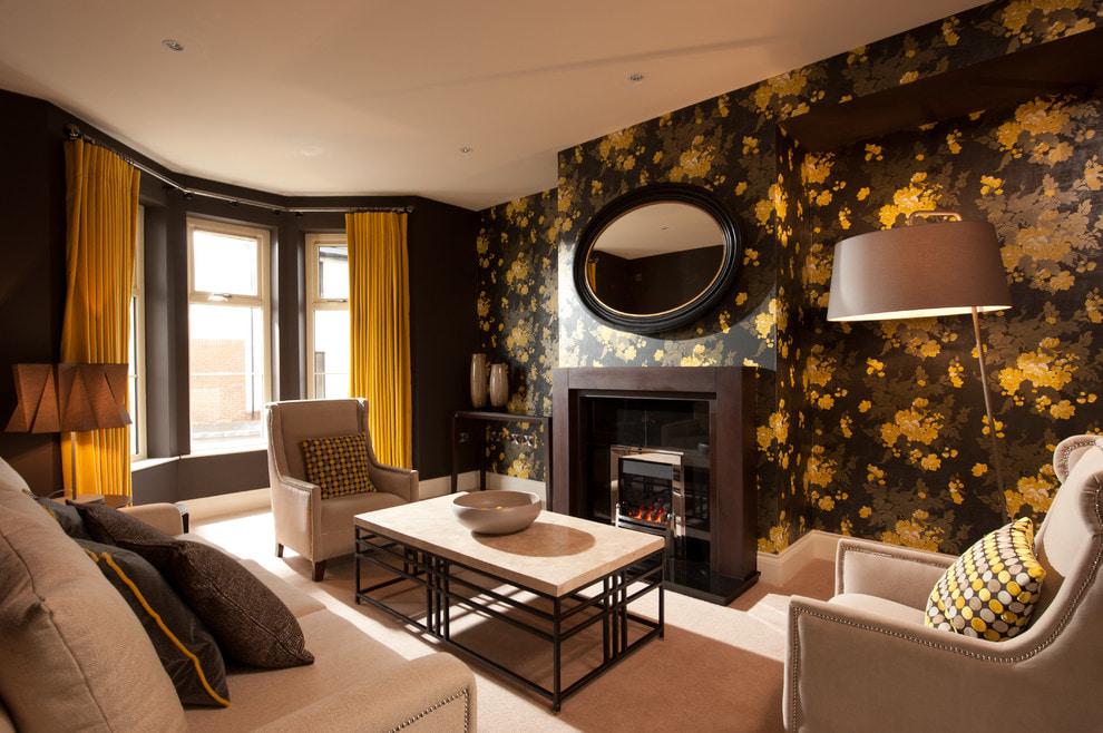If you have doubts about using black wallpaper in your apartment, try decorating your living room with it. They will give this room vigor, sharpness and some drama.