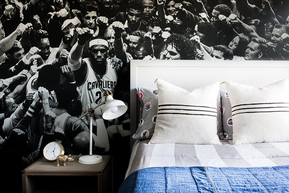 In the children's room, black wallpaper should be with a bright large pattern, for example, geometric for a boy, floral or floral for a girl. The colorful decor will dilute the dark shades. For a teenager, a combination of black with pink, turquoise, orange will be spectacular and stylish.