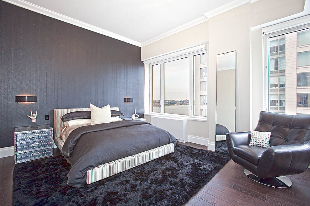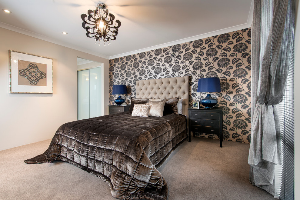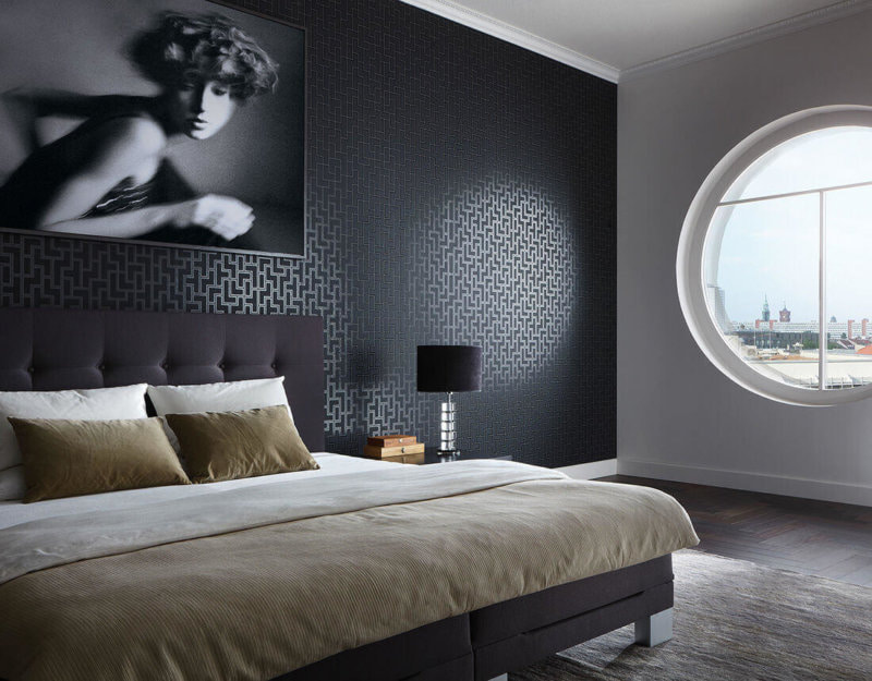 It is better to use black wallpaper in the bedroom on one wall at the head of the bed. Or place in separate areas for emphasis. A great option in combination with light and pastel shades.
