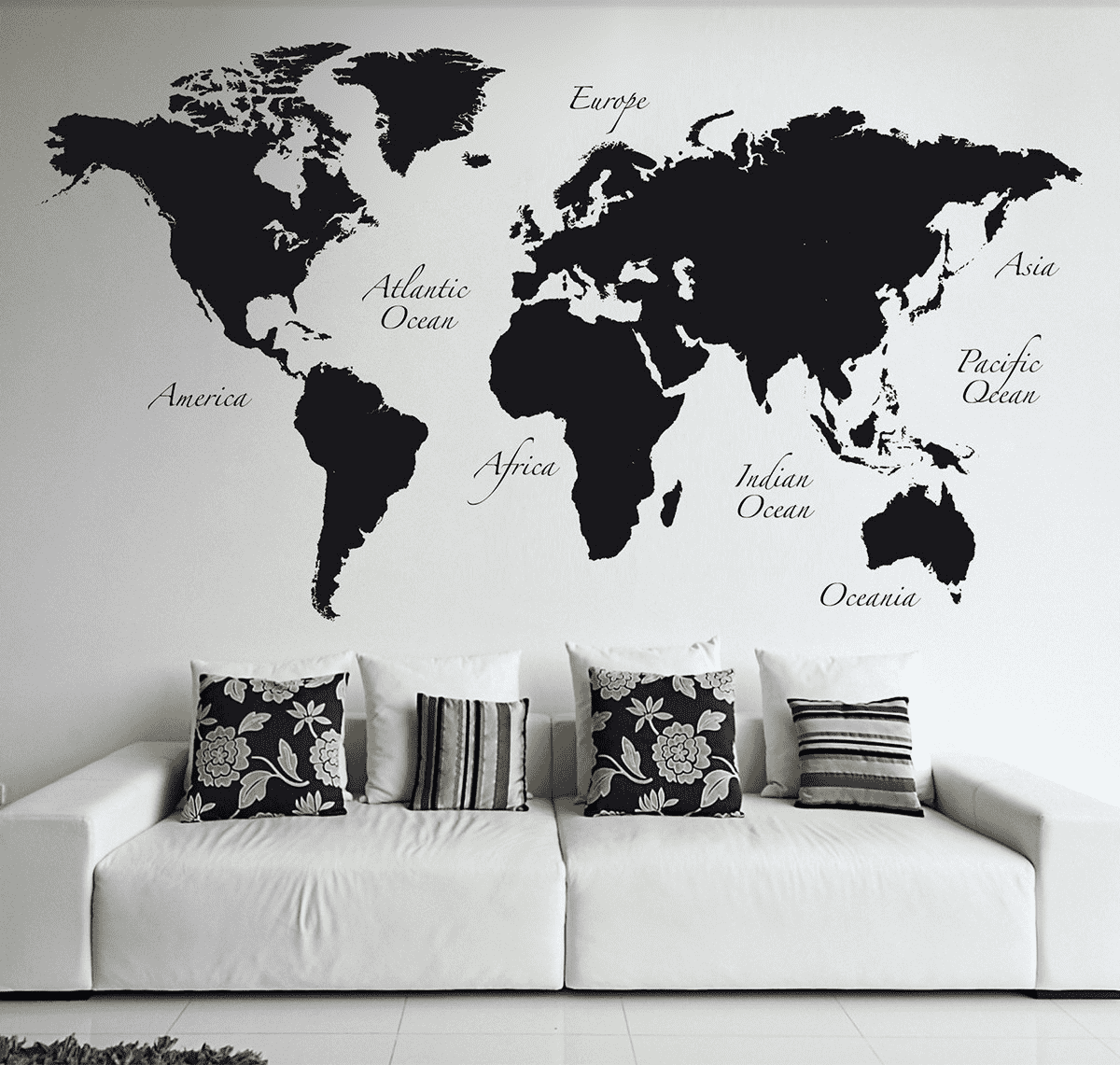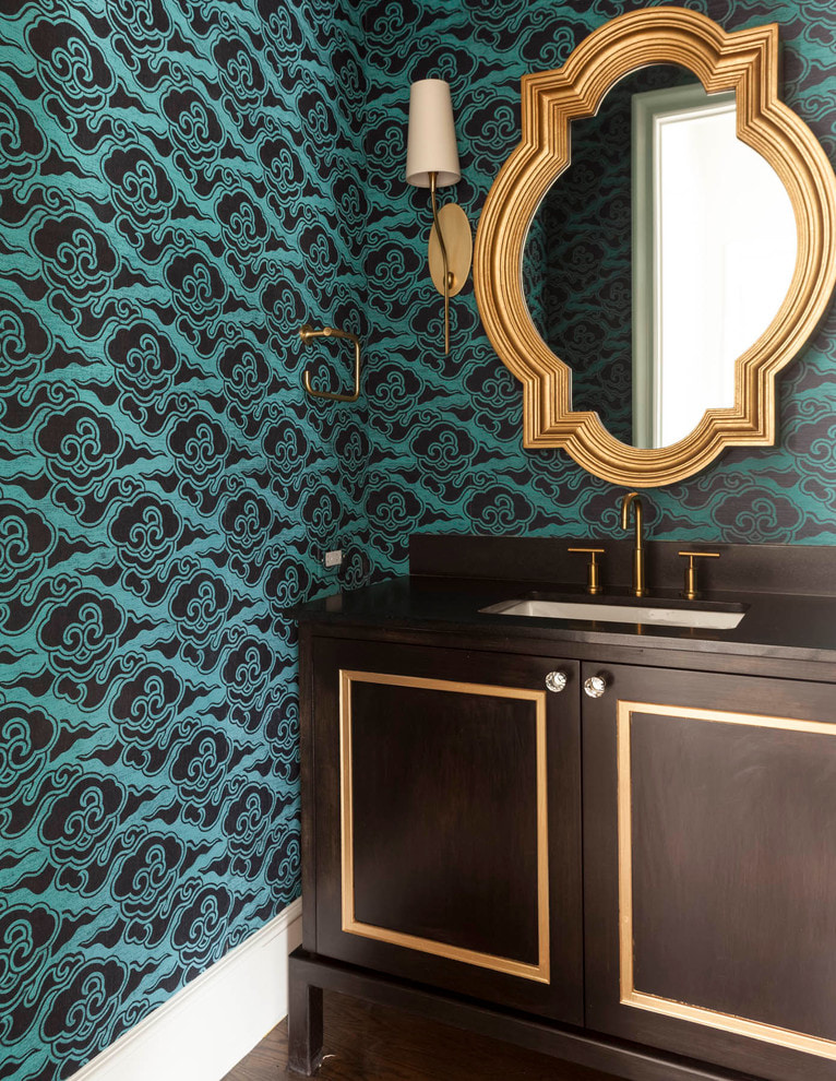 White lettering in the form of a quote on black wallpaper will become a contrasting accent, catching the eye and carrying a semantic load. And if you want to add oriental notes to the interior, then you can use Arabic inscriptions.