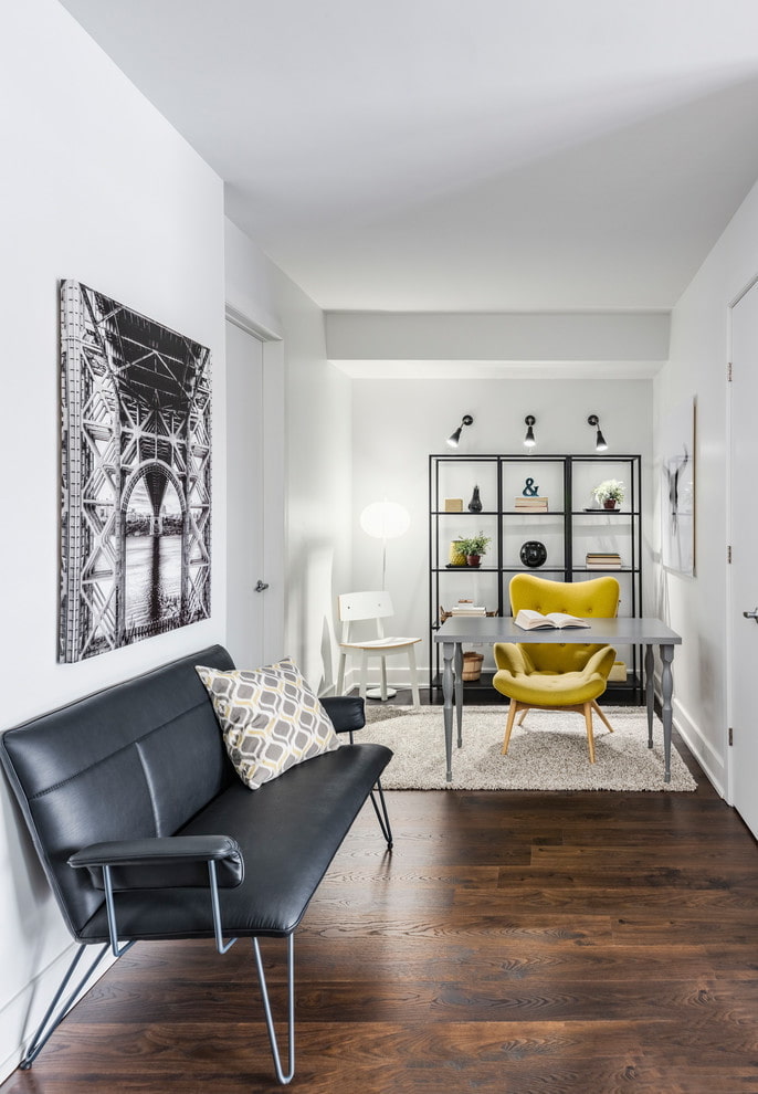 If it is necessary to place black furniture in a modest-sized room, then it is better to choose a small sofa. And the mini-sofa will perfectly fit into the kitchen or office.