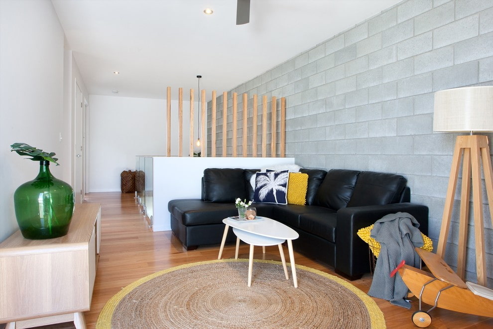 - Floor. The black sofa matches any floor surface, from tiled to wood.