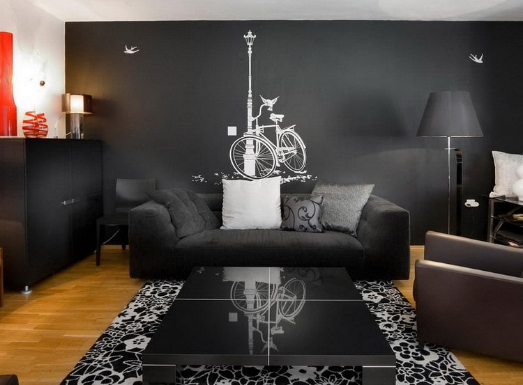 How black will sparkle depends on the overall design of the room - whether it adds elegance, becomes a daring addition to the decor, or turns an unremarkable room into an ultramodern one. In order to correctly dispose of this color, it is important to take into account some features: