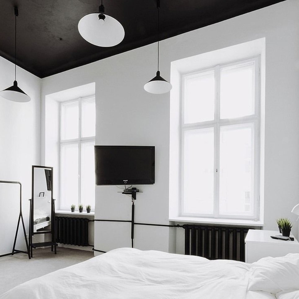 The use of black in the interior does not have to be limited to small details: it is great for walls, floors, furniture and even ceilings.