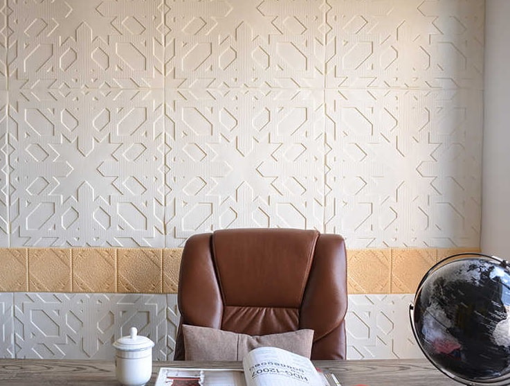 Wall panels are most often presented brick-like texture, but more intricate pieces can be found in online stores. Suitable for highlighting accent wall or niches.