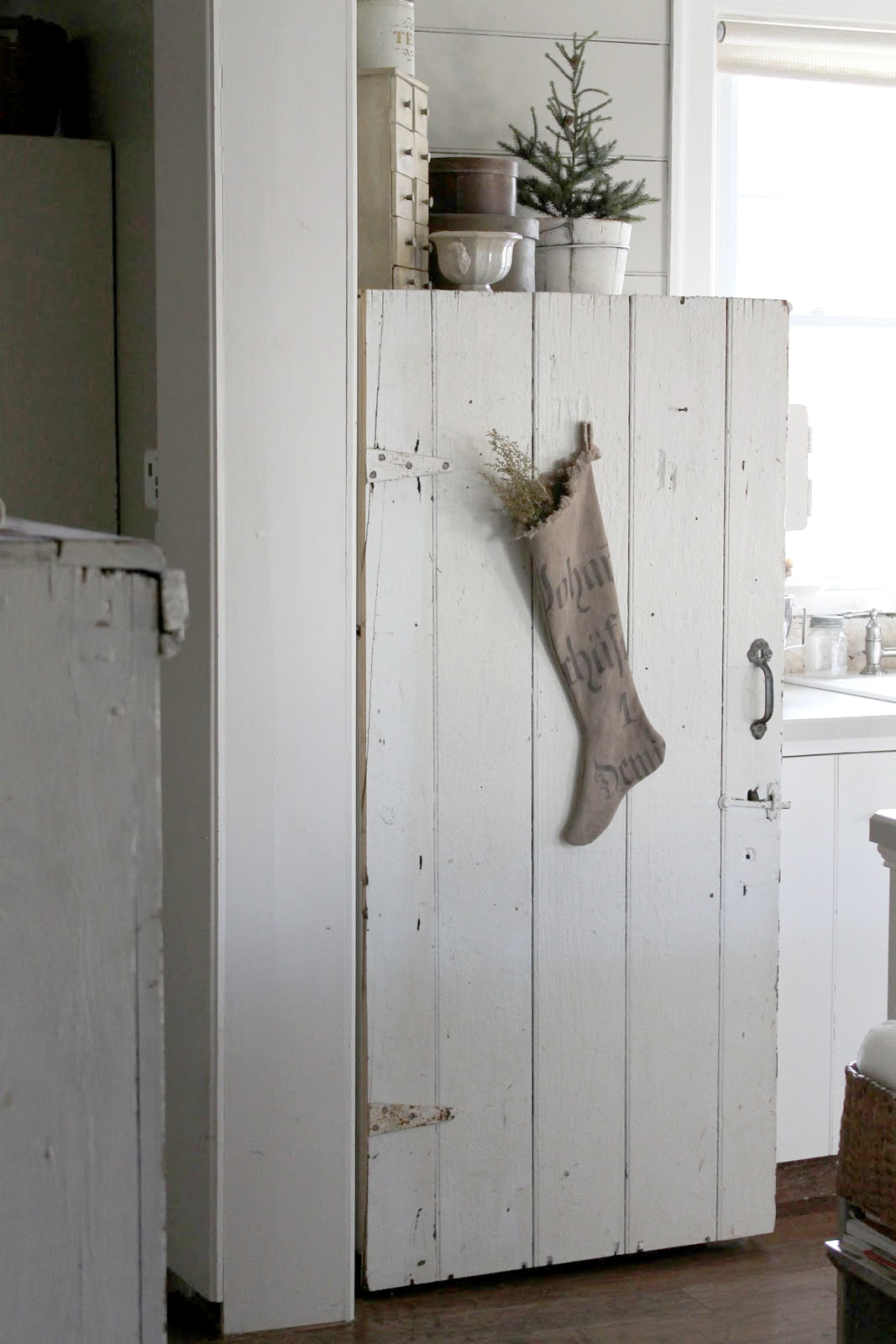 First option - install hinged shelves and fill them with beautiful dishes, baskets or cookbooks.
