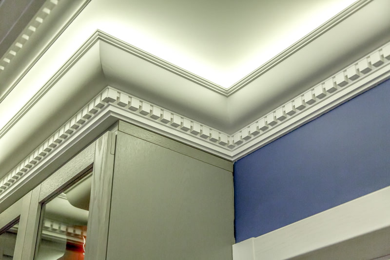 Ceiling decoration with special profile strips, or moldings, refers to both the classic and the modern style. Such elements favorably emphasize the geometry of the room.