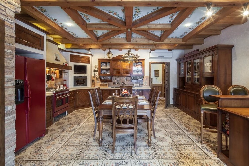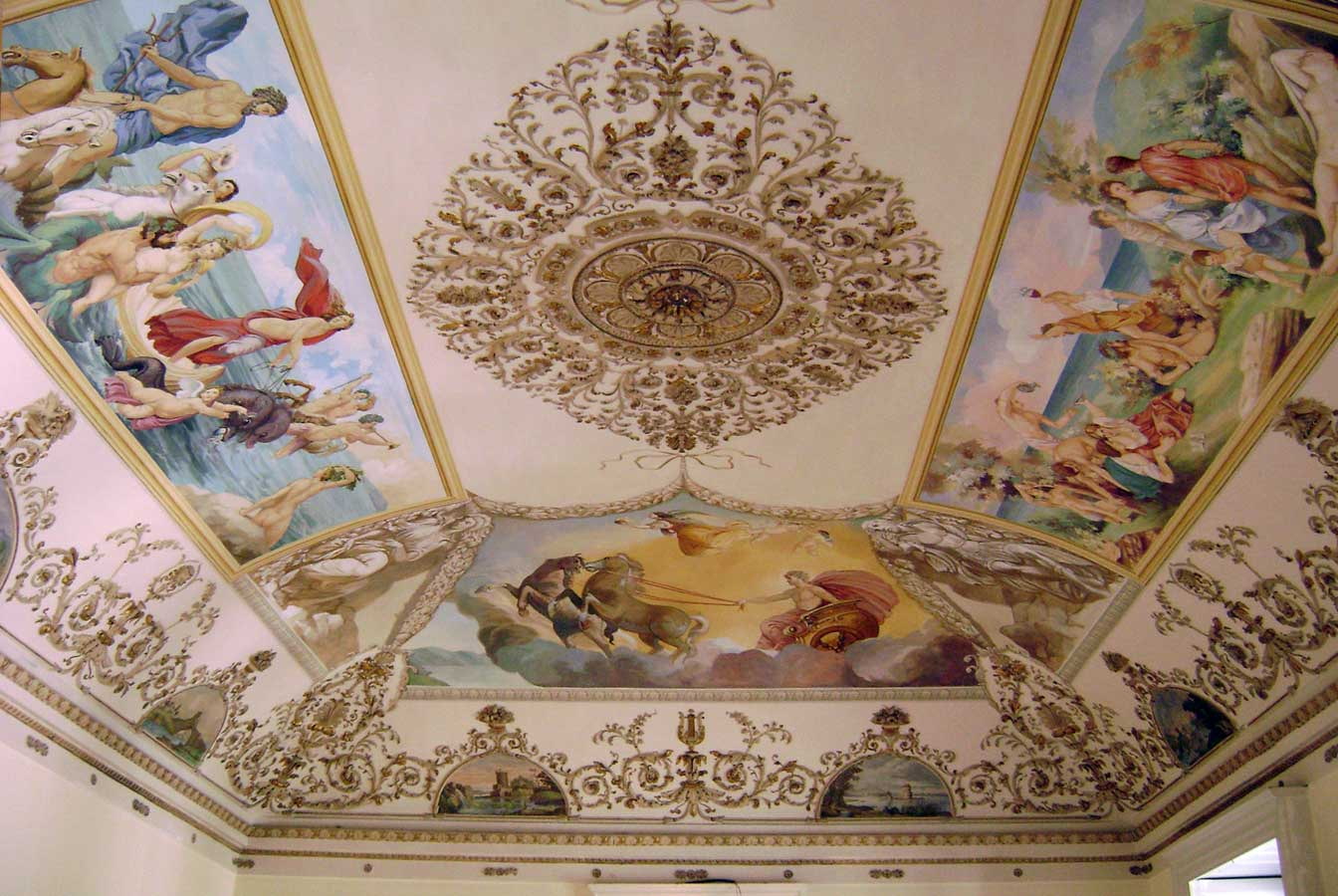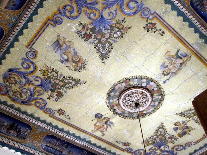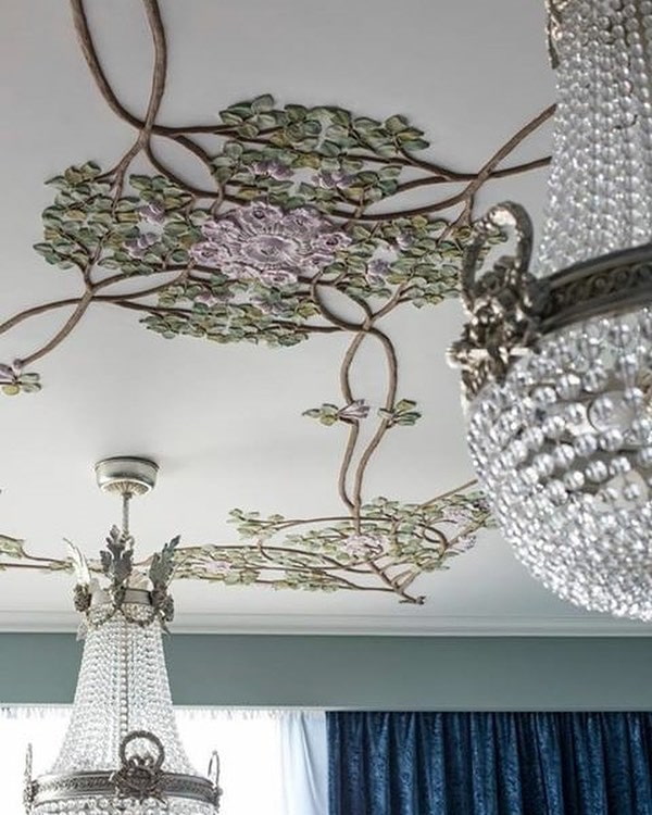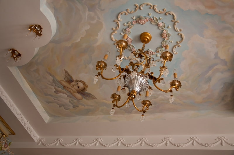 Painting on fresh plaster that dries to a durable surface is called a fresco. This design of the ceiling will set the atmosphere of the entire interior.