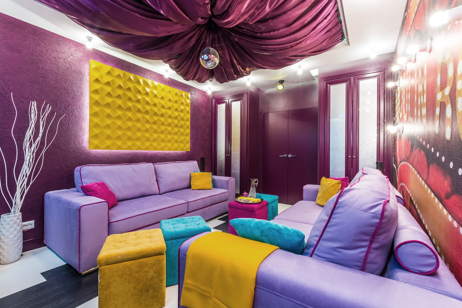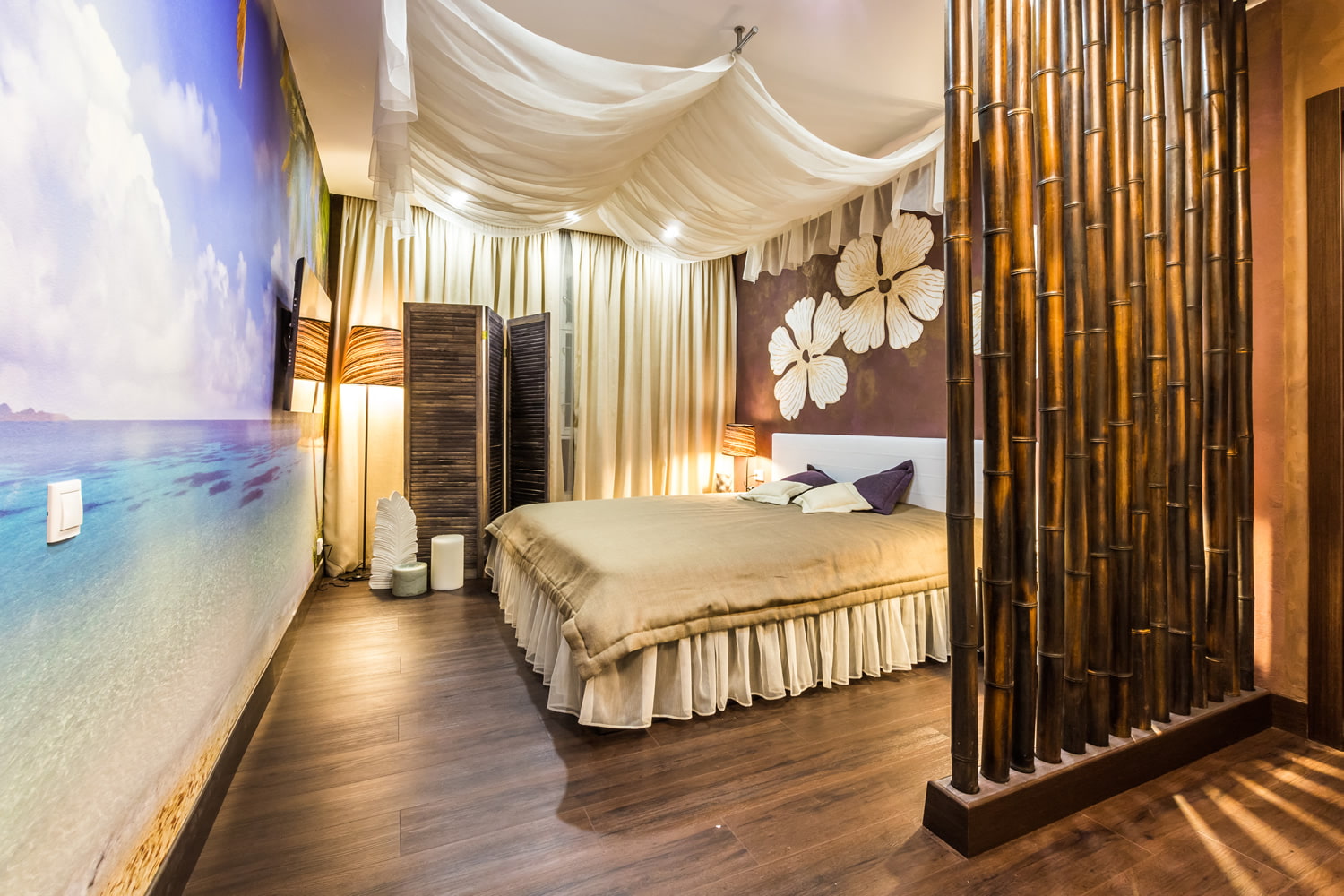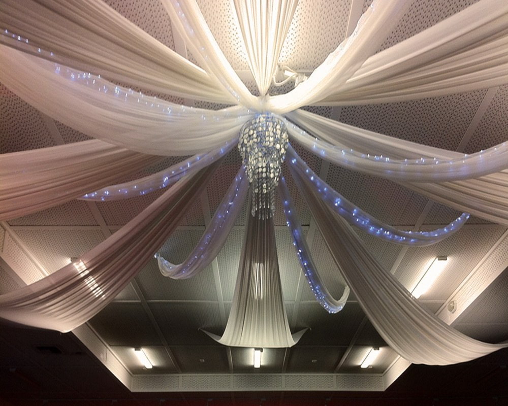 You can decorate the ceiling with fabric draperies. Upholstery of the entire room with many folds will create a unique atmosphere of comfort in the room.
