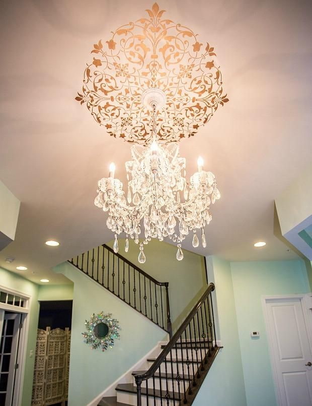 An interesting pattern, stylized, for example, as a classic stucco molding, can be done using a stencil and paint.