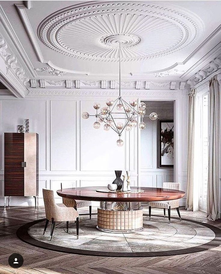 A distinctive feature of the classic interior is the use of stucco molding. Ceiling rosettes, relief moldings, interweaving of floral patterns create a special architectural composition of the room. Complex volumetric elements are made gypsum, but in more budgetary repairs, polyurethane decor is used.