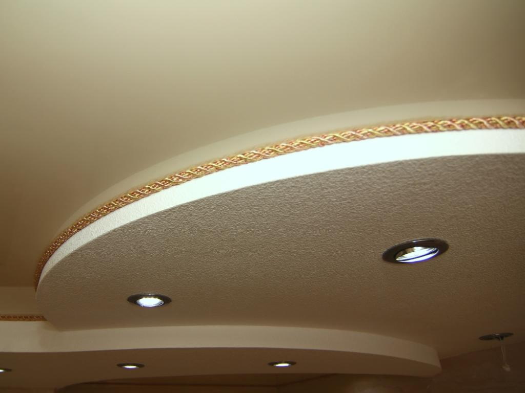 In the photo, the decor of the ceiling structure with a decorative cord and LED strip.