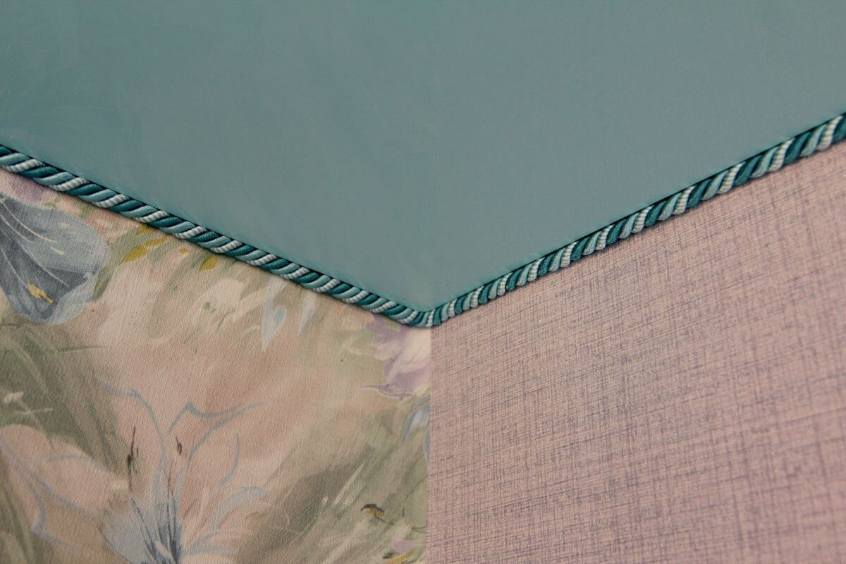You can decorate the joint of different materials, plasterboard levels or the joint between the ceiling and the wall with a special decorative rope, rope or cord. At the same time, there will be no need to use borders and edging as a decor. This method will close any uneven seam and create an interesting design.