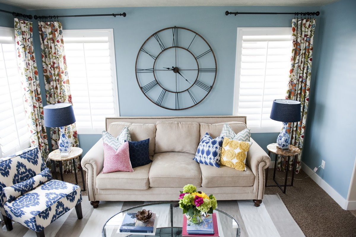 Restrained, practically minimized decor, for example, a mirror with or without a neat frame, a laconic graphic picture or an unusual clock will perfectly fit into this style direction.