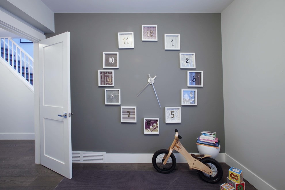 The photo shows the original large clock on the wall in the interior of the children's room.