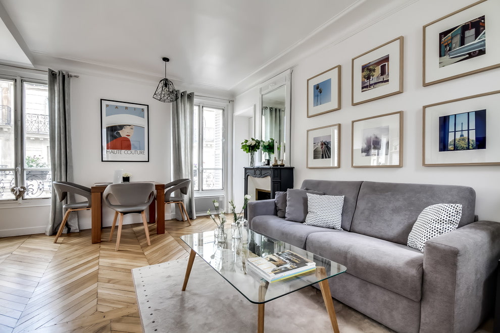 A wall with a fireplace can be decorated with almost any design element, such as photographs, paintings, shelves with vases and boxes, or other various decorations that attract attention.