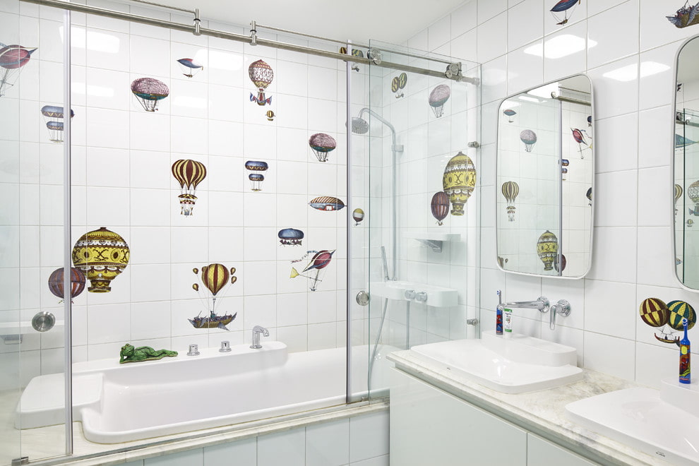 For the bathroom and toilet, decorative elements should be used, which, first of all, are moisture resistant and are not afraid of temperature changes. The simplest and most practical option will be various stickers, mirrors, they go well with the tiles.