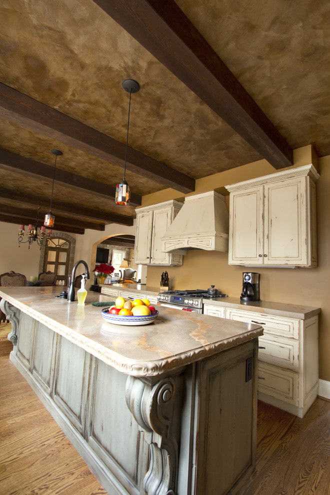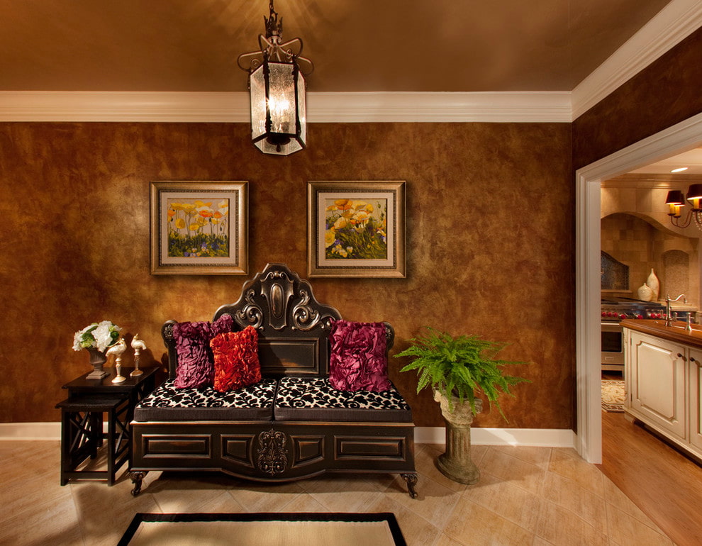 Despite the rough, slightly worn appearance, which is created using a special technique of applying patina, such a decorative finish in the interior looks very dignified, it allows you to recreate the atmosphere of the past and give completeness and completeness to certain stylistic directions.