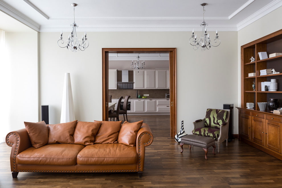 Classic interiors are combined with arches of the correct symmetrical shape. If straight horizontal and vertical lines prevail in the interior, it is better to choose a portal arch; for interiors with smooth geometry, wooden arches with a round and oval vault are suitable. It is difficult to imagine a classic arch without columns, pilasters and carved capitals.