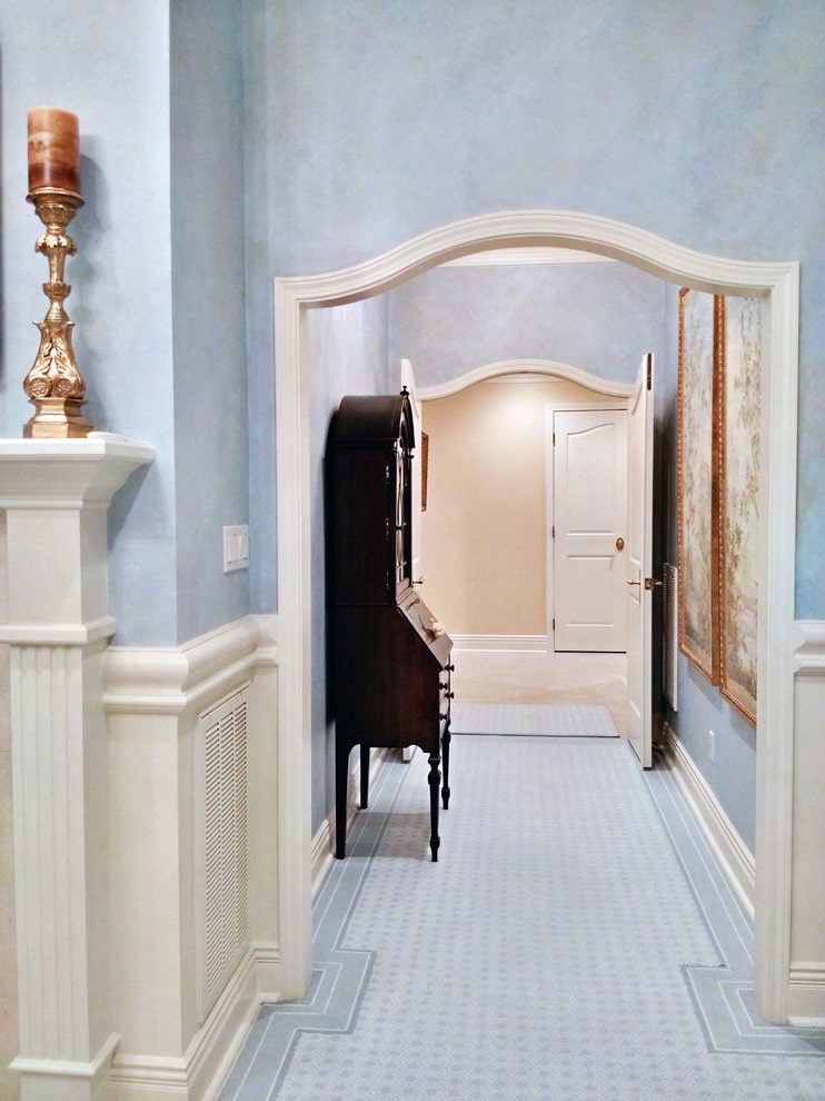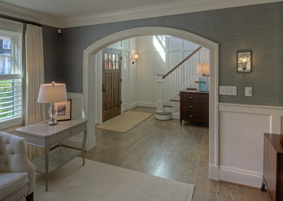 The arch makes the dark hallway brighter, letting in sunlight from other rooms. A long and narrow corridor will become more interesting if you install a series of identical arches like a suite.