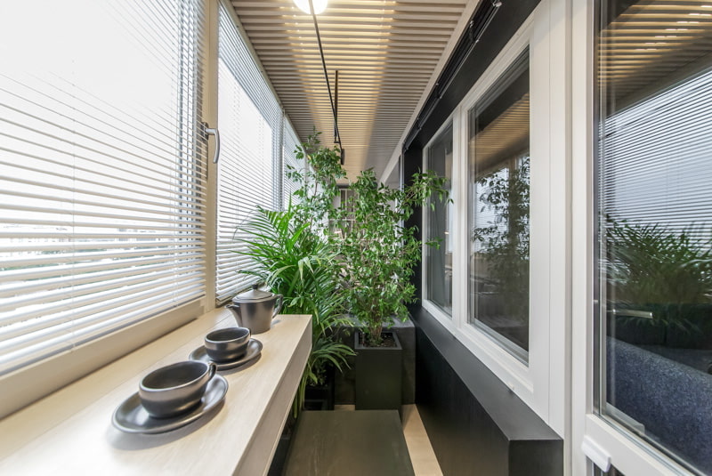 The tree is ideal for decorating a balcony or loggia. There is always a lot of light in this room, so absolutely any, even the darkest colors will be appropriate here.