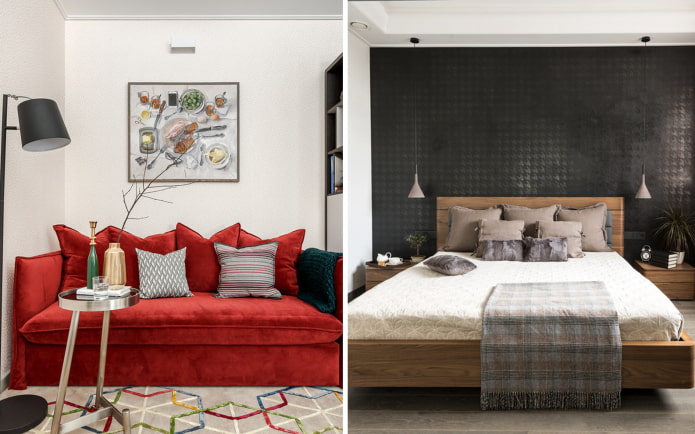 This is the best option for rooms that combine several functions. You cannot receive guests on the bed - this is uncomfortable and unaesthetic, so a sofa is an excellent way out.