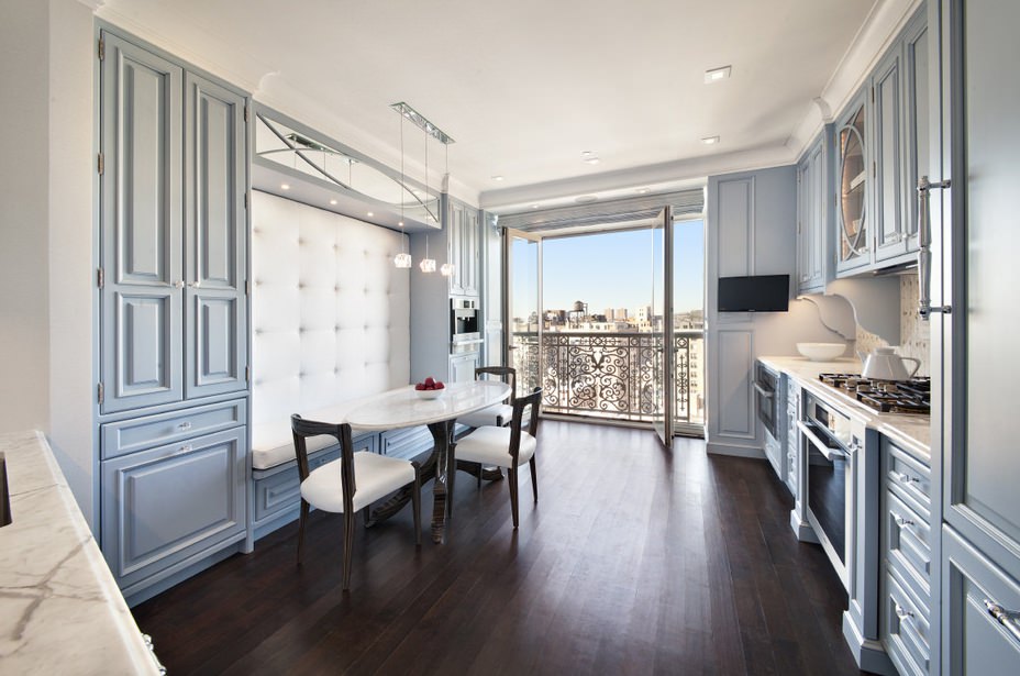 Such interiors look especially advantageous if a beautiful view opens from the window. As a rule, large apartments in modern new buildings are glazed in this way, especially the so-called "views", overlooking the forest, reservoir, beautiful urban development. Panoramic glazing is also used in private houses, if this is provided for by the design of the house project.
