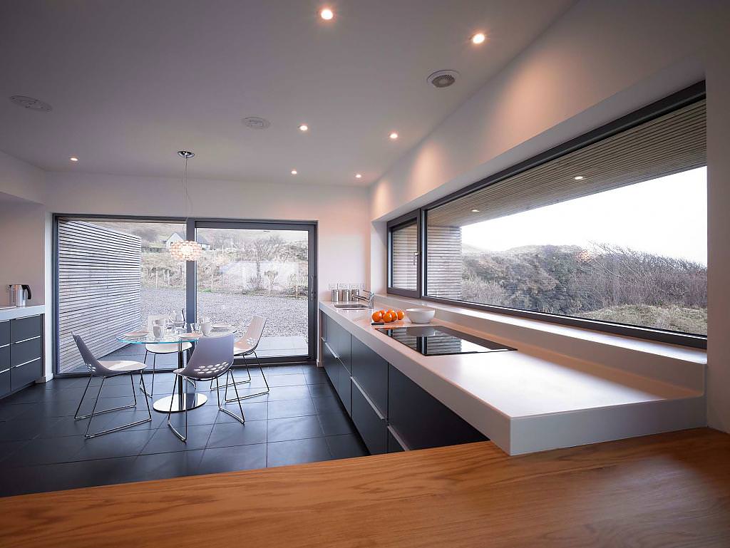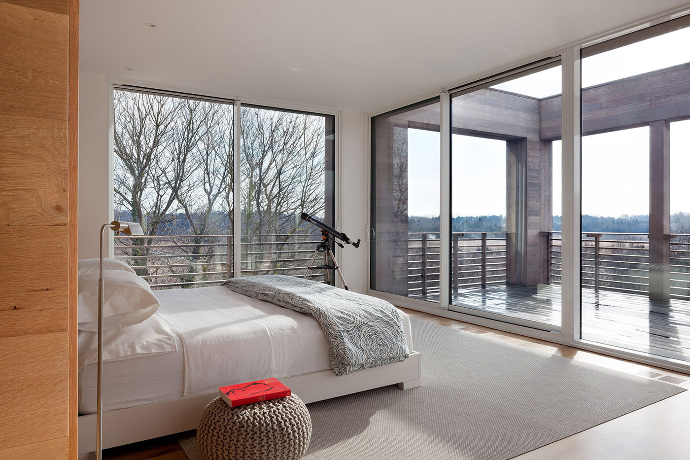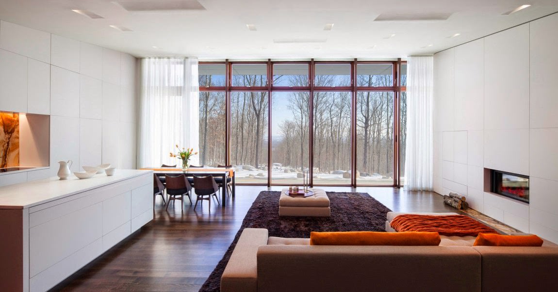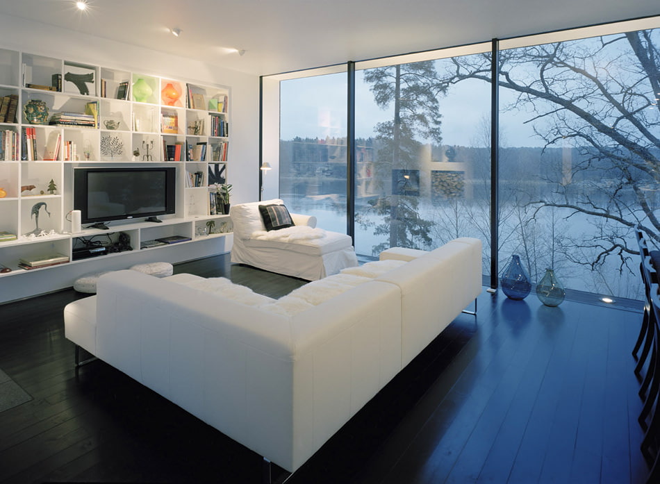 The design with panoramic windows is demanding not only on the size of the room and the environment (it is necessary for the view from the windows to be truly picturesque), but also on the climate. The closer to the north, the stricter the requirements. In cold climates, panoramic glazing is used only on those walls of buildings that face south or southwest. More light enters the room through large windows, it warms up better.