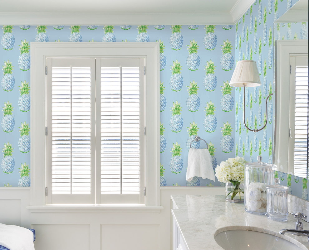 This version of wallpaper in combination with a white pattern or pattern will create a feeling of cleanliness and freshness.