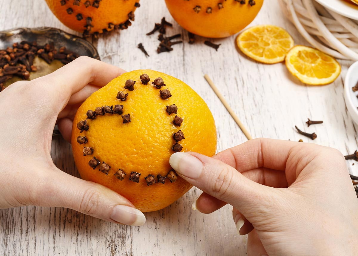 We make holes in the peel of the citrus with a toothpick, sprinkle it with cinnamon and insert a clove into the punctures. We put the orange in a dark, warm place and in two weeks we will enjoy a pleasant aroma that will last six months.