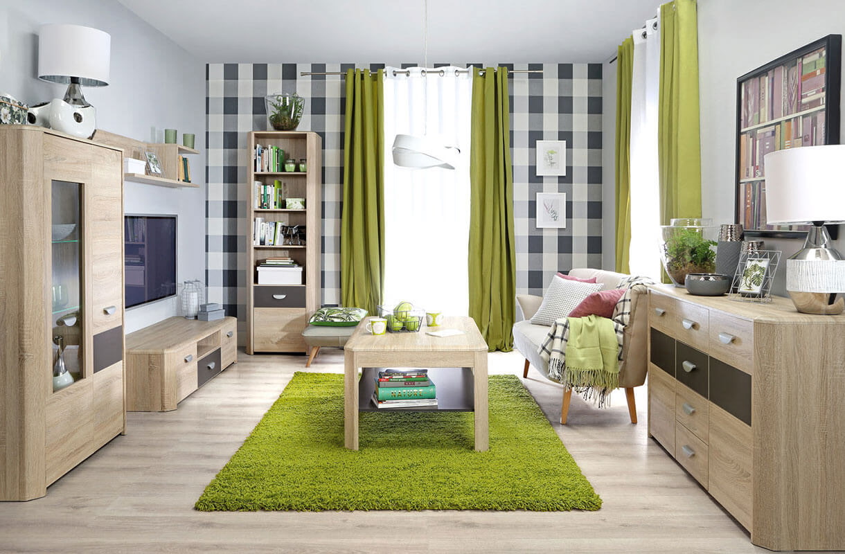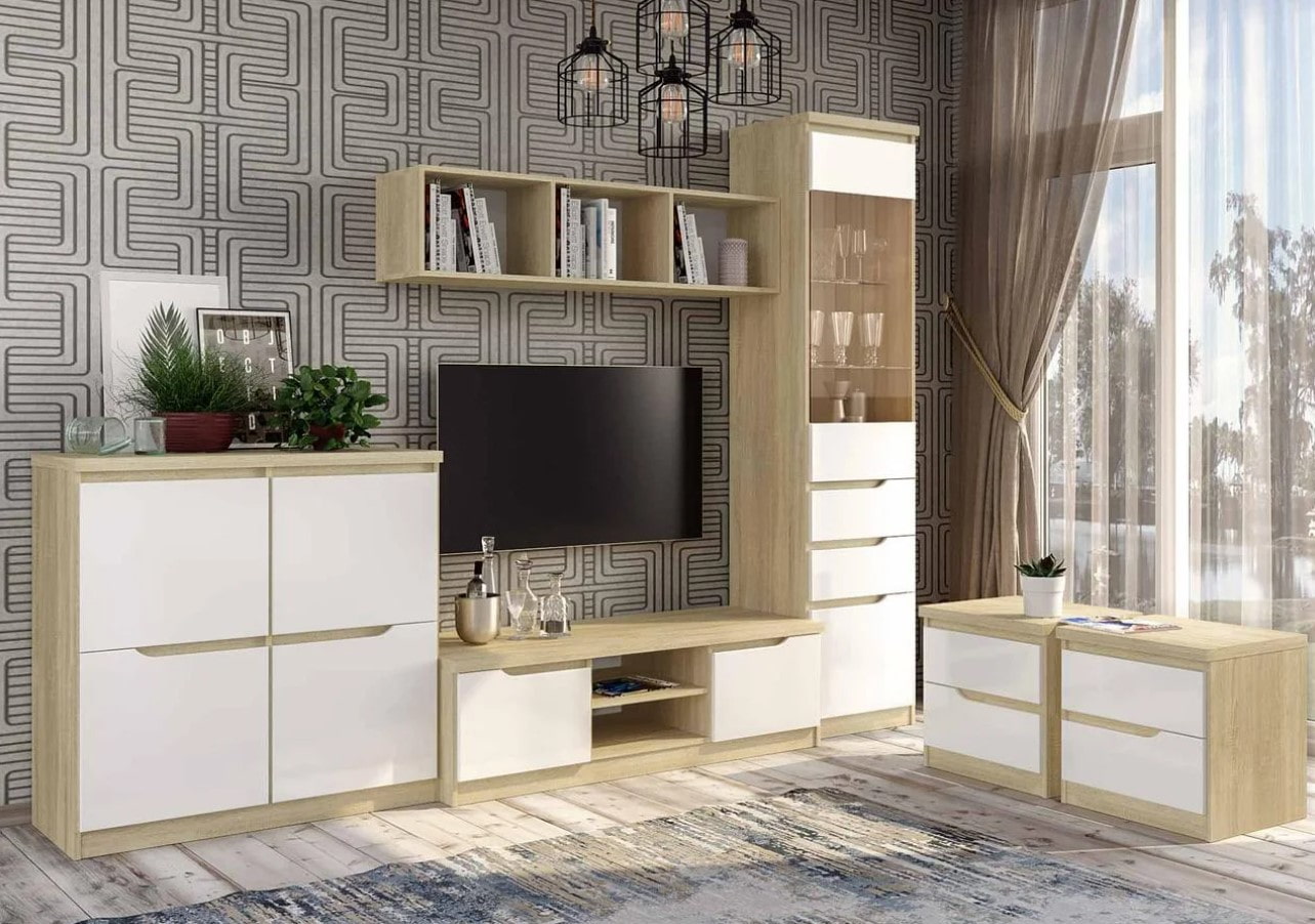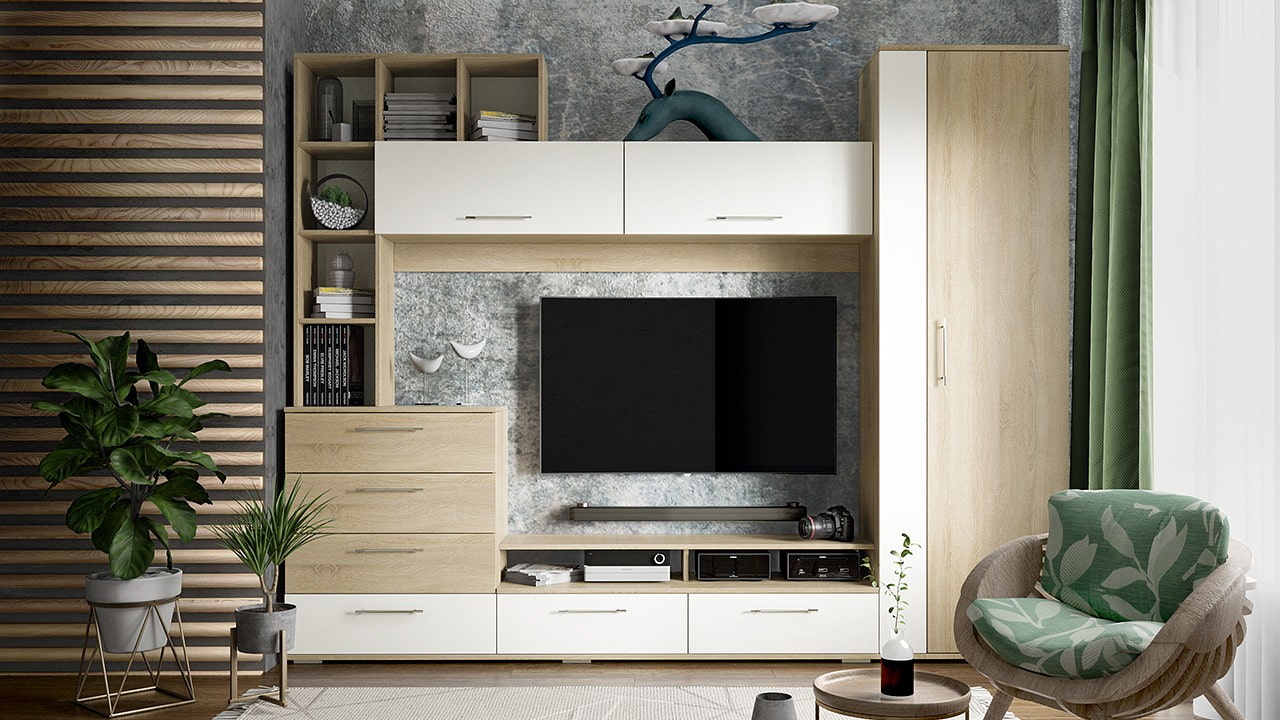 Important! In a modern living room, it is better to use a combination of white + sonoma.