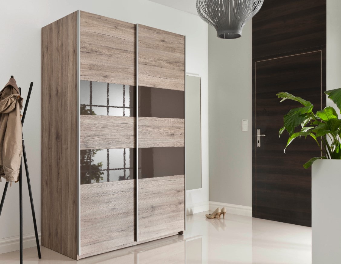Sonoma oak is no less successfully combined with wenge, replacing the milky shade. A wardrobe made of two colors of oak is a timeless interior classic.