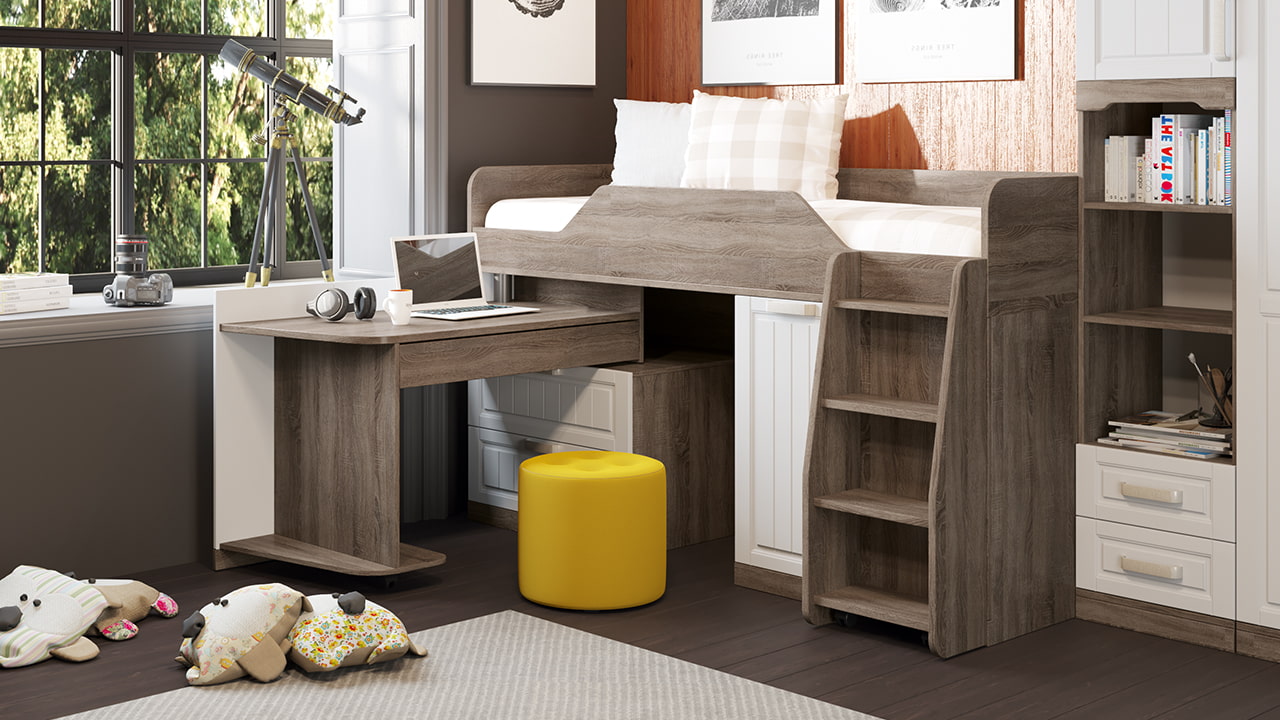 Sonoma is one of the few shades that grows with the child. Bright green, blue, pink facades will become irrelevant at the age of 7-8, while oak furniture is suitable for any age and gender.