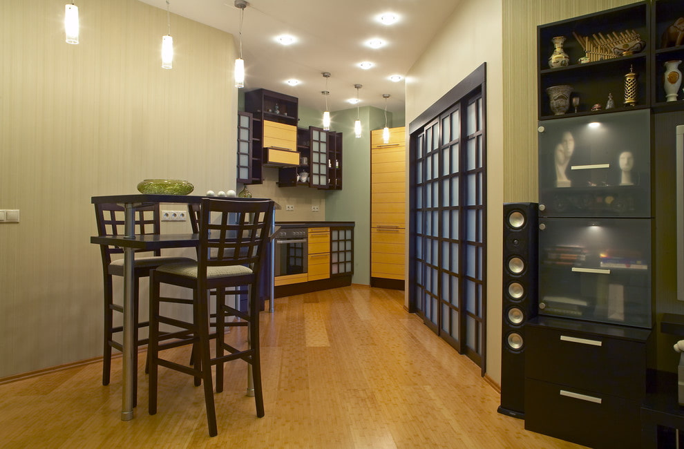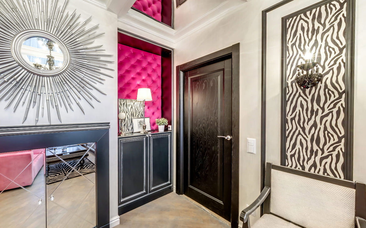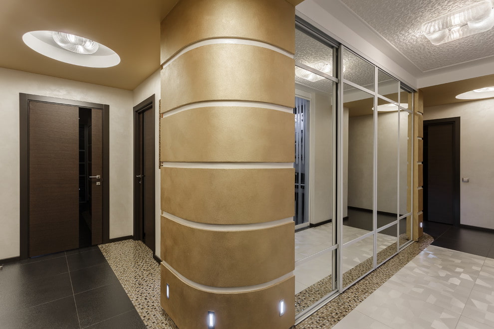 Thanks to the mirror inserts, the illumination in the room is significantly increased and it visually appears much larger. This decor gives the atmosphere unique features and gives it a certain solemnity.