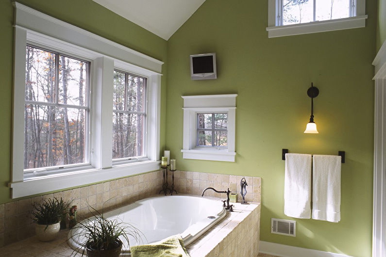 Pistachio bathroom - great place to relax... Those who like to lie down in warm water with pleasant music, candles and other attributes of the SPA will like it. Use extra dim lighting, add cozy details like a rug, and your personal lounge area is ready.