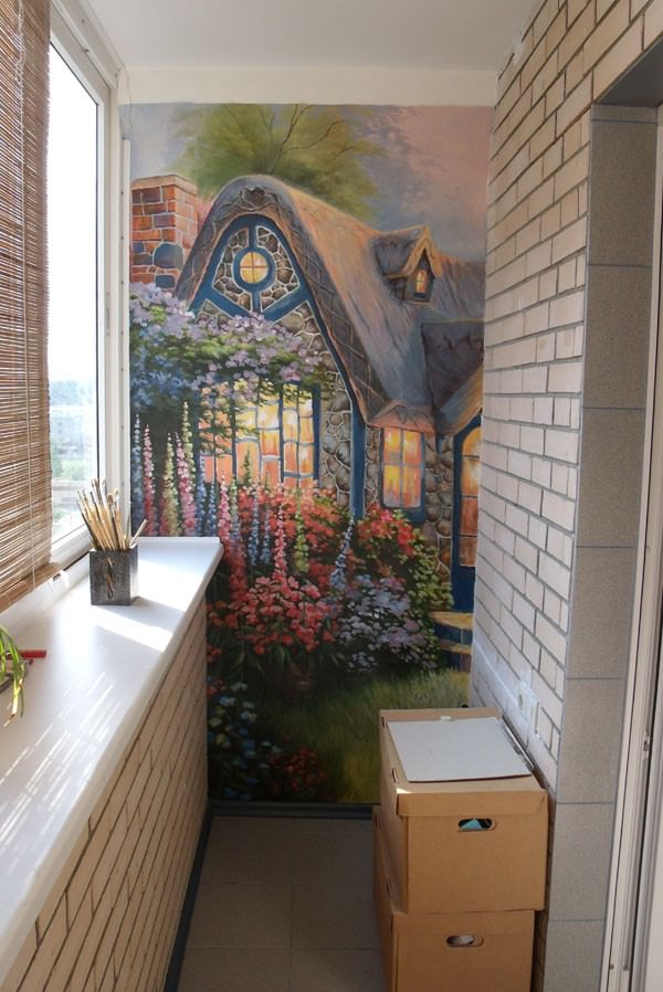 Wall murals with a picture of your favorite country will help you create a small paradise out of an ordinary balcony. A photo panel with birds of paradise and a garden will envelop you in comfort, the balcony will be an ideal place for morning coffee.