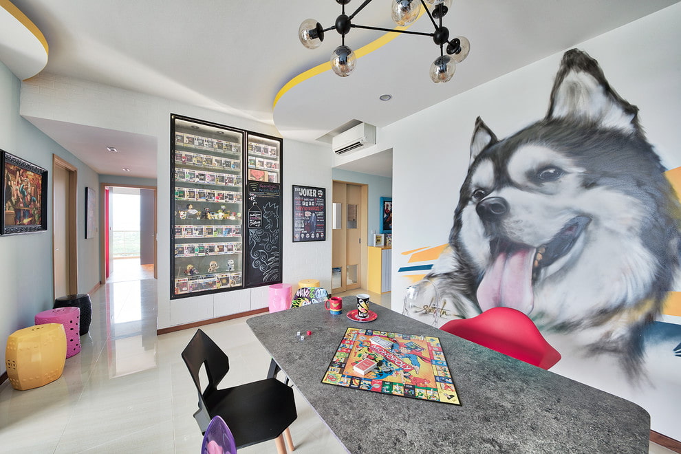 The atmosphere of a holiday will be presented to the interior by photomurals with drawings of balloons.