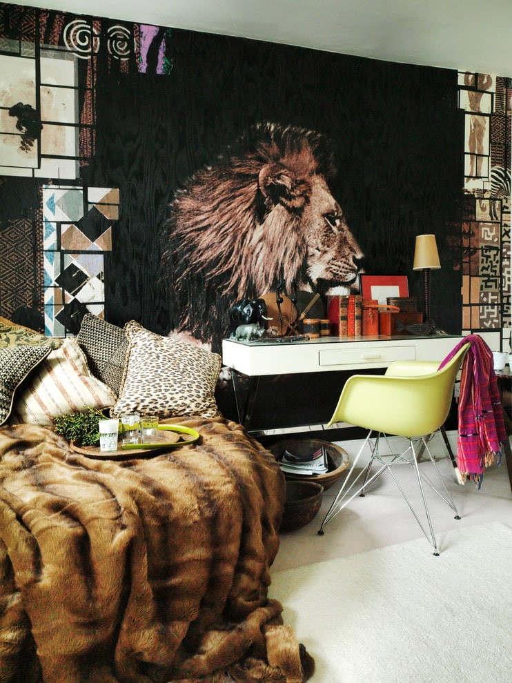 An image with wild animals, such as tigers, lions, bears, leopards, wolves or rhinos, is more appropriate to place in the interior of a living room or study.