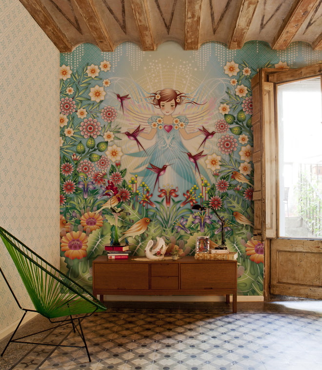 Wall murals can be successfully combined with different wall finishes.
